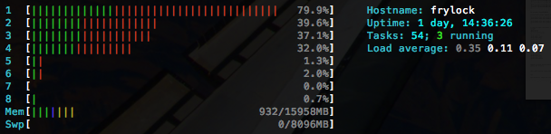 Running the same benchmark against the same host but pointing Siege at Varnish’s TCP port instead of Nginx’s yields considerably lower CPU utilization: