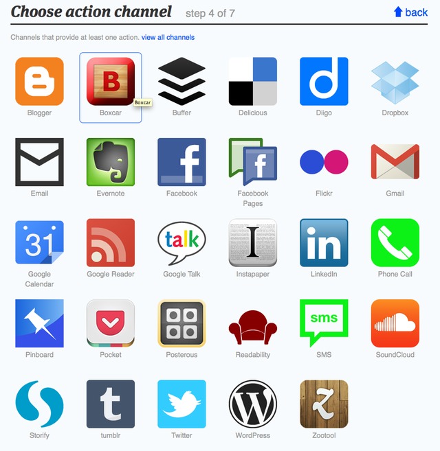 We’ll get a list of action channels. Again, there are lots of potentially cool things we can do here, but we want to click the Twitter icon.