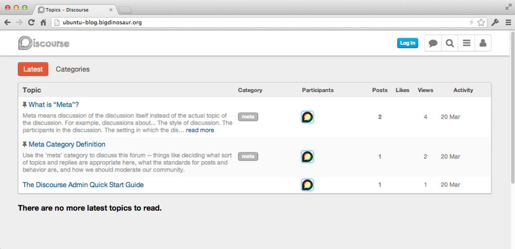 This doesn’t matter much to me, though—I dont’ code. I just wanted to set it up and play with it. So, this is a walkthrough on how to deploy Discourse on Ubuntu, using Nginx and Phusion Passenger. If you want to see the end result, check out my Discourse test forum—when we’re done, you’ll have something similar up and running.